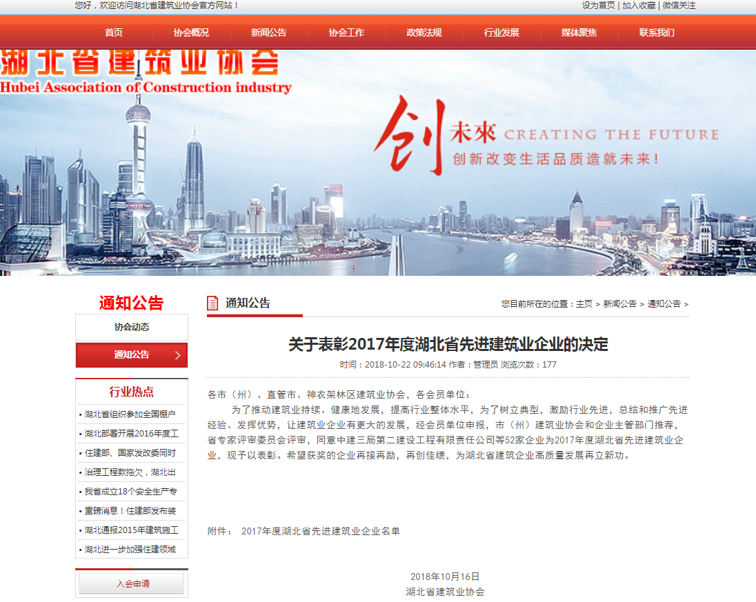 關于表彰2017年度湖北省先進建筑業企業的決定