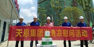 活動現場,天恩集團工會主席羅友峰對堅守在崗位的一線作業人員表示親切慰問,并發放了防暑降溫慰問品。囑咐一線員工要合理安排作業時間,做好各項防護措施,確保人身安全。