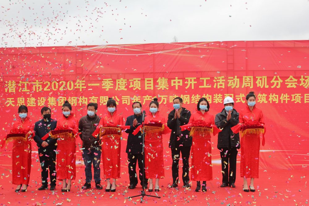與此同時,天恩集團鋼結(jié)構(gòu)裝配式建筑項目在潛江市周磯辦事處分會場開工。該項目占地面63.43畝,總投資1億元。預(yù)計2020年12月建成投產(chǎn),屆時將創(chuàng)造長期性就業(yè)崗位300個,新增工業(yè)產(chǎn)值2億元,為打造潛江綠色建筑產(chǎn)業(yè)園和推動地方經(jīng)濟社會快速發(fā)展作出積極貢獻。